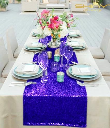 12x108 Inch Sequin Tablerunner Royal Blue Wedding Party Catering Event Linen Royal Blue