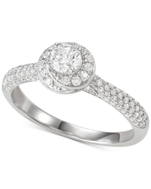 Diamond Halo Engagement Ring 3 4 Ct T W In 14k White Gold