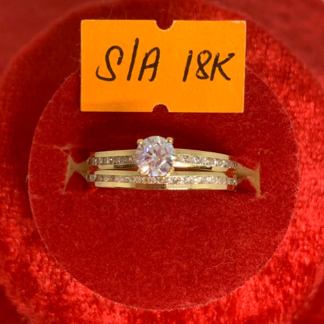 18k Saudi Gold 2in1 Eternity Engagement Ring With Wedding Ring Sizes 5 5 8 5 Dual Layer