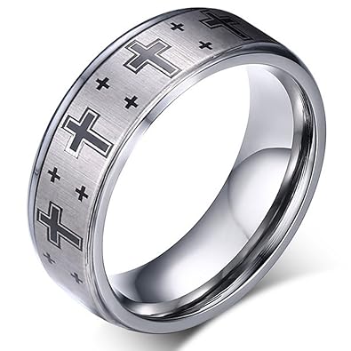 Jajafook 8mm Men Vintage Tungsten Carbide Christian Catholic