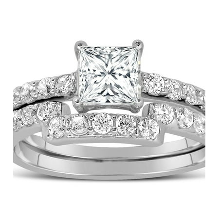 1 Carat Princess Cut Diamond Wedding Ring Set In White Gold